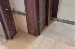 洗手间周边漏水,木地板下面的木龙骨变形 |